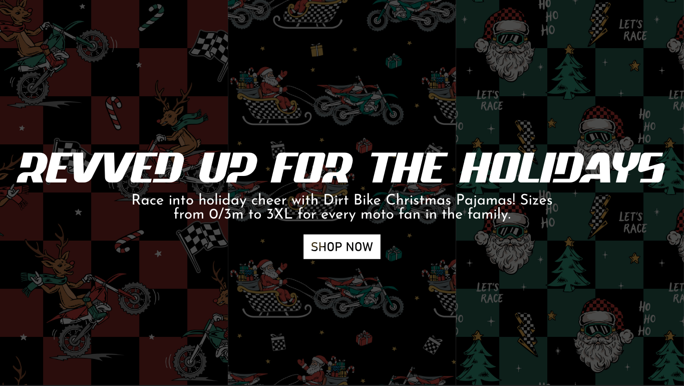 If dirt bikes are life, then you’ve come to the right place. Our motocross inspired items combine comfort, functionality, and design to keep you in the racing spirit all day long. From pajamas for relaxing racers to shirts and bags that turn heads, we’ve got something for every moto loving rider, no matter your age.