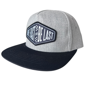 Race ahead of the competition with our "Be Fast or Be Last" snapback hat. This sleek and sporty accessory features a heather grey crown that wraps all the way to the back, paired with a bold black brim for a dynamic look that exudes speed and style.