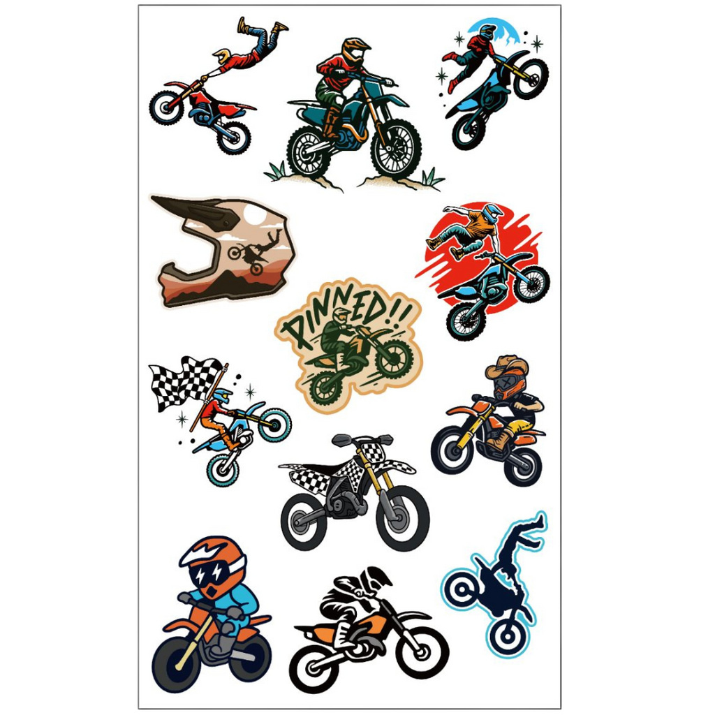 Take your passion for racing and dirt bikes to the next level with our tattoo sheets that promise not only style but also endurance. Whether you're a thrill-seeker on the track or a fan of high-speed action, these tattoo sheets provide a bold and vibrant way to express your love for the world of motorsports. Embrace the power of these designs that are as resilient as the riders they depict, and let your adventurous spirit shine through with the lasting allure of these racing and dirt bike-inspired tattoos.