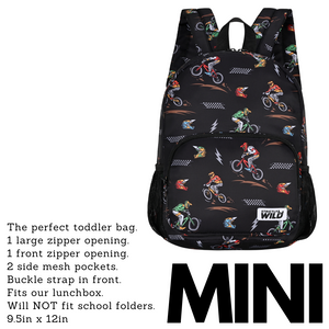 For the little ones or those on-the-go, our mini backpack is the perfect companion. It features one large opening and a front zipper pocket, providing enough space for your toddler's essentials or as a compact travel bag. Inside, you'll find a sleeve opening to keep important items secure. Plus, it has two mesh water bottle holders to keep your little one hydrated.