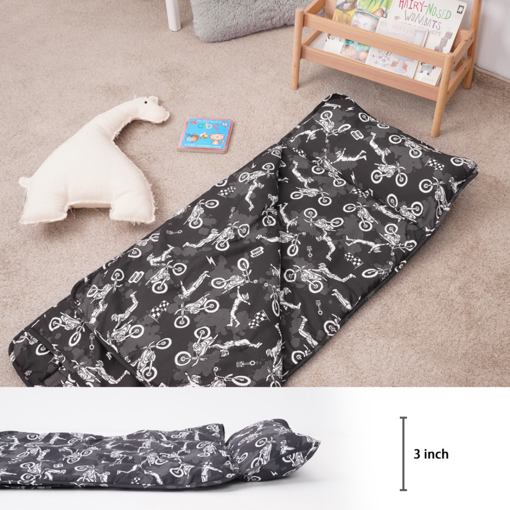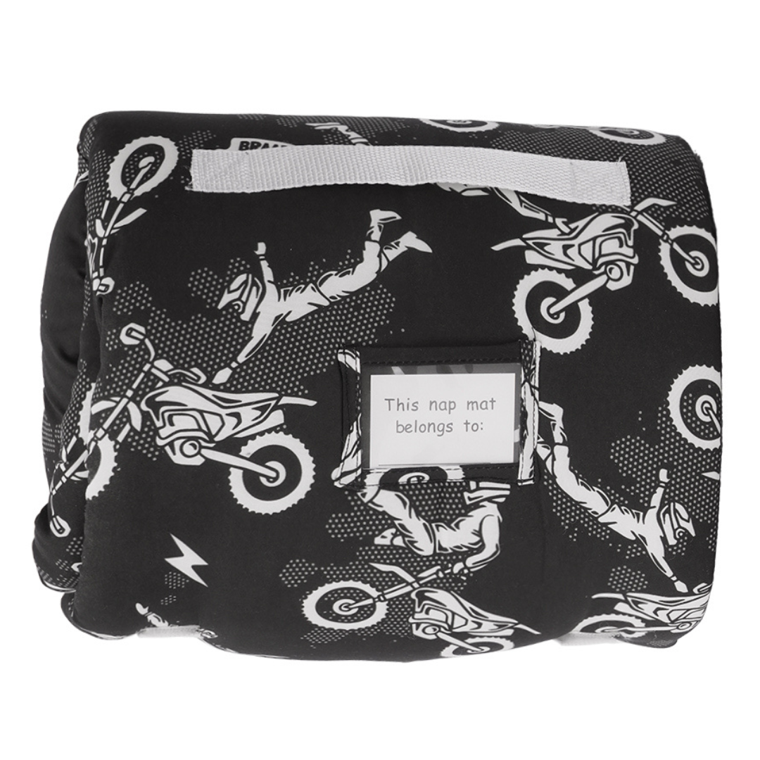 Upgrade your child's nap time experience with our Dirt Bike Inspired Nap Mats, where comfort, durability, and style come together to create the perfect resting companion for your little adventurer.