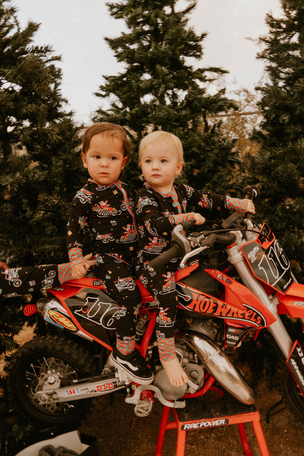 Rev up comfort and style for your little racer with our Zip-Up Bamboo Pajamas! Designed for the adventurous spirit, these pajamas are a must-have for dirt bike and racer enthusiasts. Crafted to meet the highest standards, they're as soft and breathable as a gentle breeze, making them perfect for cheering on race day.
